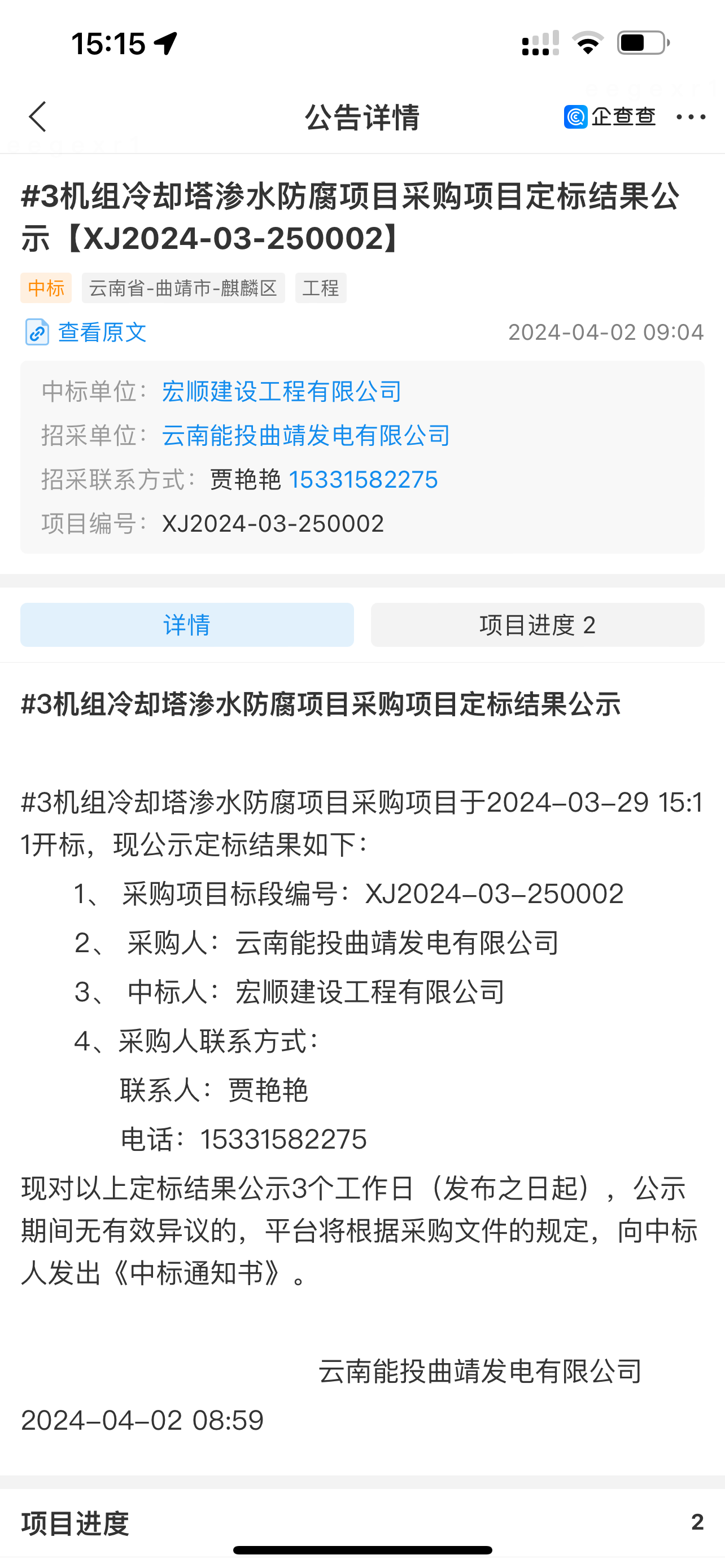 熱烈祝賀我公司中標云南能投曲靖發電有限公司機組冷卻塔滲水防腐項目